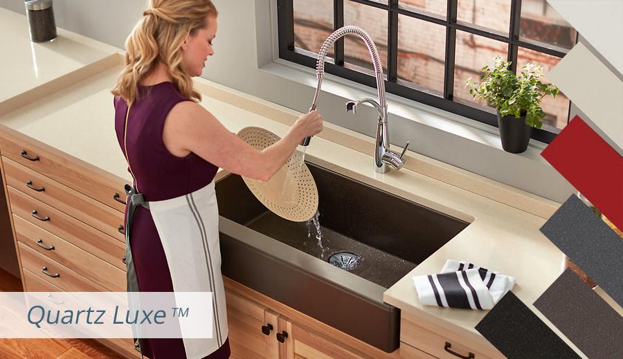 I originally settled on the elkay quartz classic undermount composite 33 in. Get free shipping on qualified granite/quartz composite undermount kitchen sinks or buy online pick up in store today in the kitchen department. Quartz composite sinks are difficult to scratch (they have to be altered with diamond tooling), however getting the original finish to match after removing a scratch will be problematic. Elkay quartz classic ® sinks have the organic look and feel of authentic stone. Best kitchen faucets for granite countertops. Both granite and quartz countertops should be installed by a professional, as they are extremely heavy and difficult to handle. Additionally, cutting holes for the sink is no easy task. Composite sinks are made by combining crushed granite or quartz with a resin filler. Quartz can also be a great material for sinks. Be careful with cooking pans though: As my remodel progresses and cabinet etc. Quartz quartz is actually harder than granite and thus, more durable. The first sink made of quartz to join our top 10 list is the elkay quartz classic elgu2522.